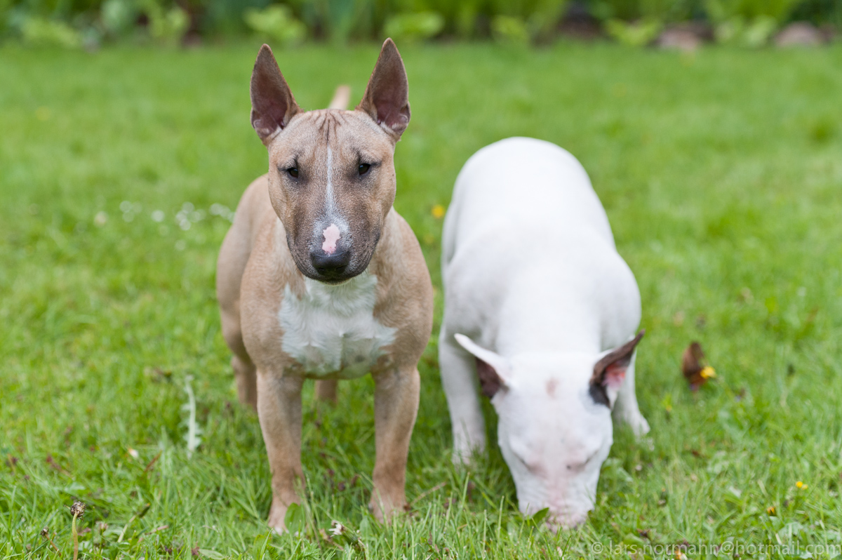 Hermann med Hedvig som letar efter gottgott i gräset